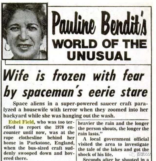 也许这个案子当时被迅速遗忘的部分原因有几个。首先,埃塞尔自己不想公开,她对UFO本身没有兴趣(尽管她会坚持她所看到的是真实的)。一开始,她非常愿意与《伯恩茅斯时报》的记者海斯交谈,并接受其他媒体的一些采访,但很快她拒绝了所有进一步的采访要求。
