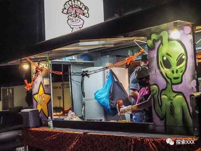 沿着通往海滩的路边摊出售所有你能想到的外星主题的东西。在这两座城市周围,从理发店到餐馆,到处都在接受这一形象。但不仅仅是人们想要赚钱。
