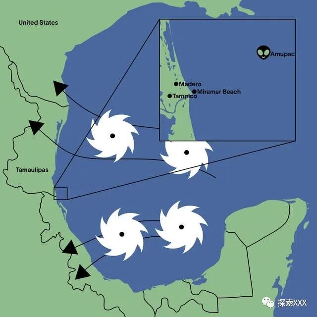 多年来,关于外星人水下基地的神话越来越多,特别是1988年的吉尔伯特飓风在气象学家预测致命风暴将袭击马德罗和坦皮科地区后改变了方向。这场风暴在加勒比海、美国和墨西哥南部造成300多人死亡,并造成数十亿美元的损失。到2005年,当卡特里娜飓风逼近时,当地人举着牌子出现在美丽玛海滩,请求外星人保护他们。于是又一次,飓风来到了其他地区,特别是新奥尔良附近,造成1800多人死亡。
