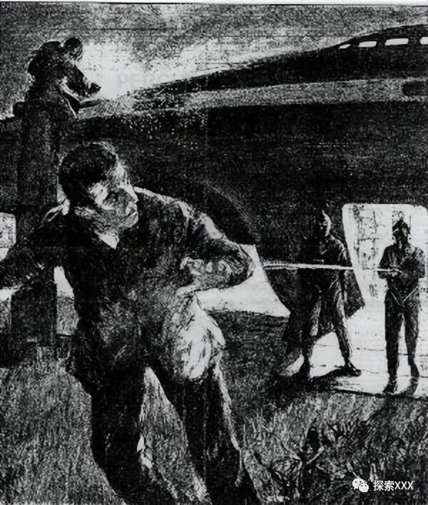 我看到圆盘周围有四个生物。两个在梯子旁边。第三个似乎试图焊接一组管子。正是这个操作产生了引起我注意的奇怪的闪光。我以为这是某种秘密原型的测试。