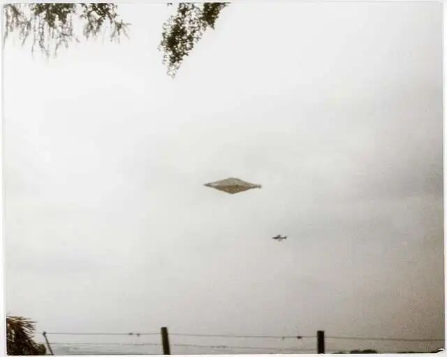 2008年,就在英国国防部解散UFO办公室前不久,英国国家档案馆公布了数千份曾经是秘密的UFO文件。有一些照片中的不明物体,被判定为鹞式战斗机。但这些解密文件中并不包括这张巨大的菱形UFO的照片。国防部和国家档案馆认为,出于“隐私考虑”,这些文件必须再保密54年,直到2076年。