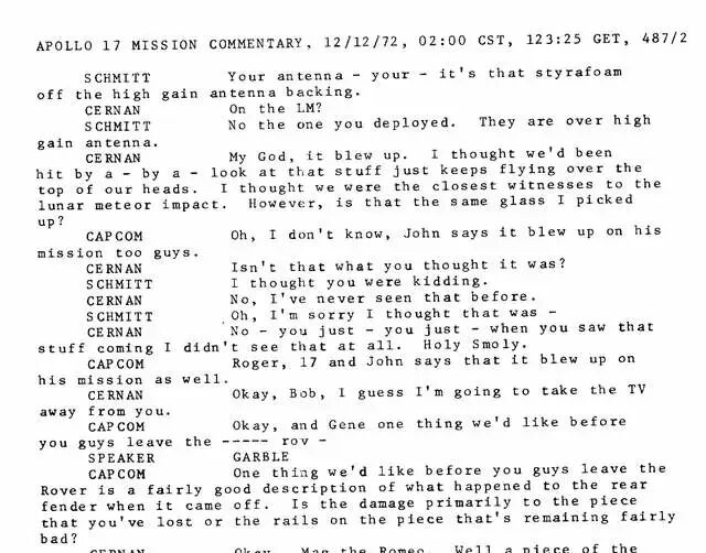 第二个宇航员听到后先是大吃一惊,在短暂的沉默之后,他说,这是高增益天线背衬上的泡沫聚苯乙烯爆炸。