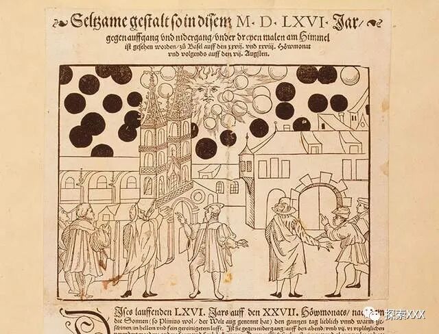 第一份报纸被称为《巴塞尔大报》,可以追溯到1566年,作者是塞缪尔·考克斯。这是一份关于“许多巨大的黑色球体”的报告,它们“以极高的速度”在太阳前面飞行。根据《巴塞尔大报》,“其中一些变成了火红的,后来褪色并熄灭了。”荣格注意到这一现象与现代UFO的描述有相似之处。