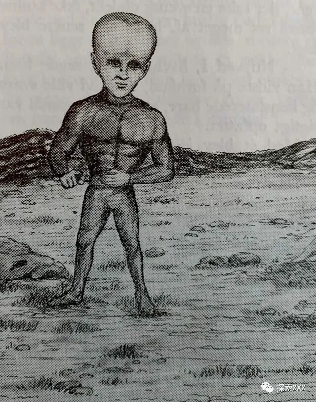 这个时候,大家都冷静了下来,仔细端详这个矮人。他并不是侏儒,身材很好,肩膀宽阔,五官正常。他的皮肤像亚洲人一样偏黄,眼睛深陷,呈黑色,并没有眼白。他的头顶有点绒毛,头发几乎全白了。耳垂与脖子连在一起,像鱼翅。嘴唇皱巴巴的,窄窄的,没有颜色。