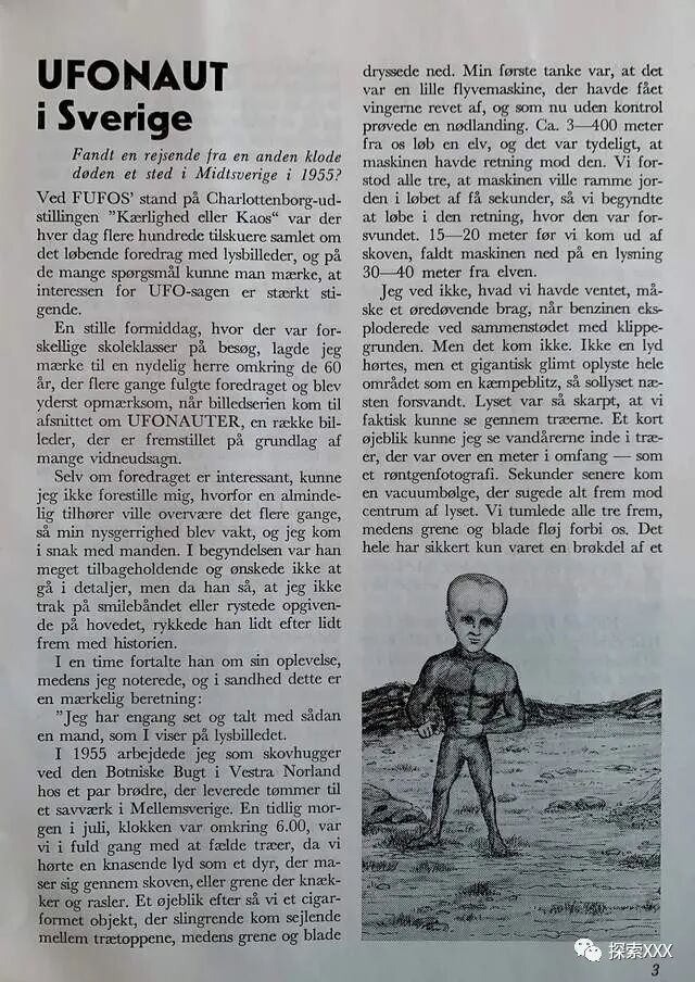 这个事件最先由瑞典FUFO组织成员约翰·拉封丹注意到。在1977年瑞典哥本哈根夏洛滕堡举办的名为“爱或混沌”的展览中,他遇到了一位在UFO研究小组展台聆听讲座的先生。他大约60多岁,连续几天都会来听讲座,并且当每次幻灯片放映到关于类人生物的部分时,他都似乎非常感兴趣。