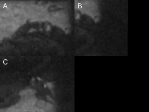 值得一提的是,如果我们仔细查看视频,躺在地上的外星人可能并没有死,它右手的一根手指可能在动 (A);在相机旋转加速之前,头部似乎略微向左转动 (B);左手似乎也在扭动 (C)。