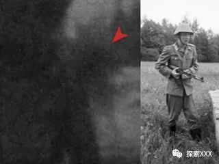 外星人右侧似乎有一个人影,很可能是一个士兵,突出在顶部的东西可能是步枪或军用背包收音机的天线。 如果左边有一个人,右边也可能有一个人。