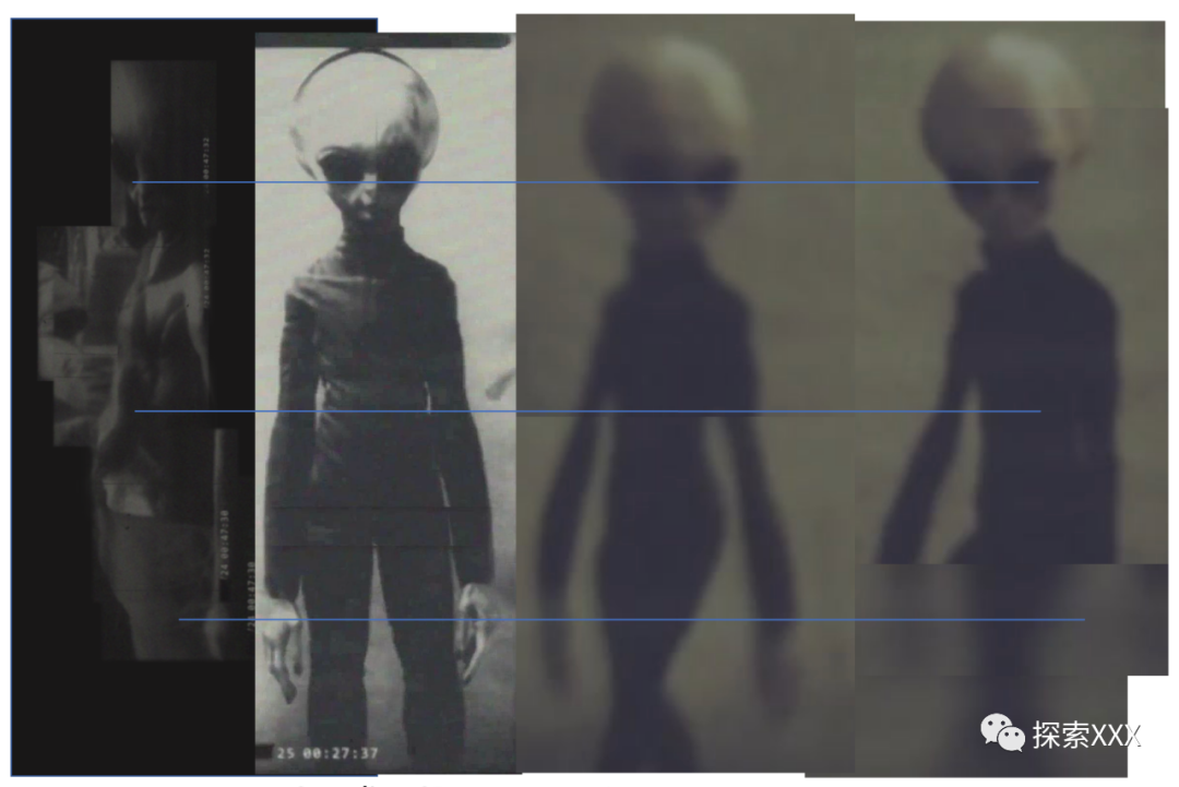 与Ivans视频中看到的每一个外星人做对比,可以看到它们非常相似,说明至少属于同一“外星种族”,因为它们的身体比例匹配: