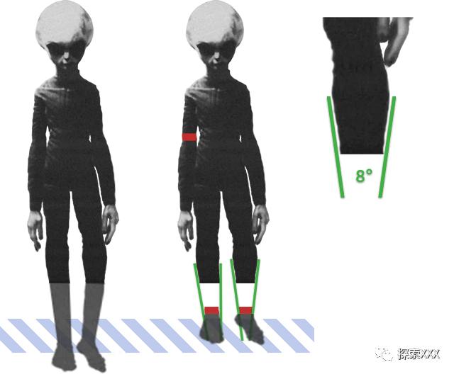 在后面的“测量身高”场景中,我们看到的外星人腿的下半部分的厚度和形状表明,外星人的腿可能并不像一些人形容的那样长。事实上,可以测量可见小腿轮廓的倾斜度约为8度。