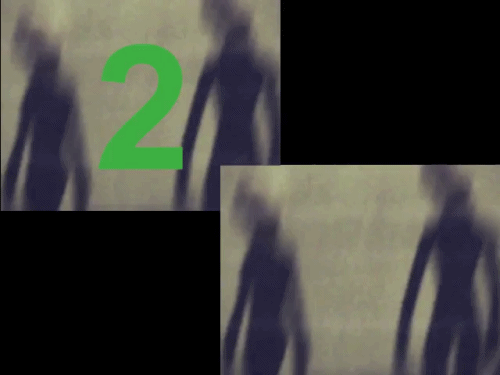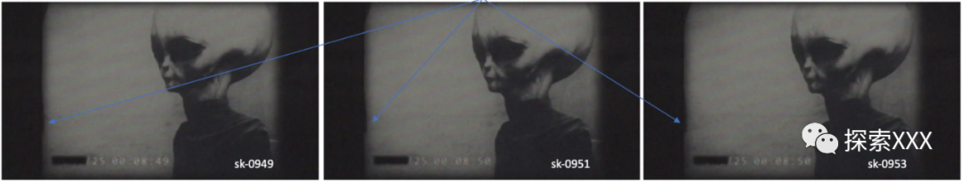 这段视频是几个视频中唯一一个彩色动态视频,因此拍摄时间可能晚一些。在这段视频中,可以看到同时出现了多个外星人,它们在人类的陪同下沿着一堵墙行走。下面是稳定化后的图像。