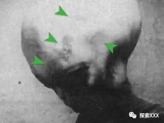 根据视频中的头部细节,可以判断瘦鲍勃可能会有受伤的迹象,特别是如果与UFO坠毁事件联系起来看。由于不知道外星人的皮肤健康程度如何,我们无法确定这些深色斑块是否真的是一种病变: