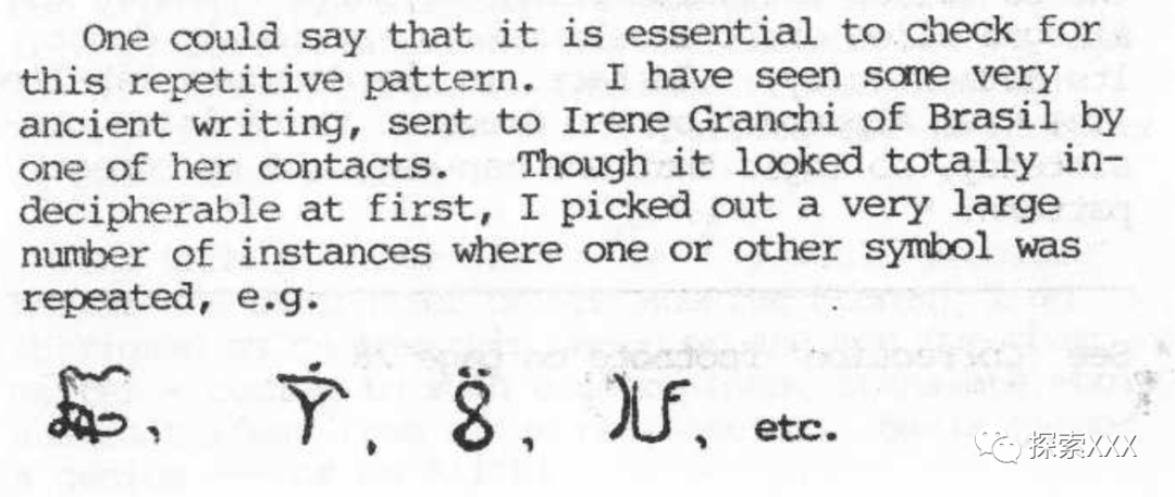但三个参考是法国考古学家马塞尔·F·曼教授于1963年在巴西发现的一个巨石石刻,上面有一些模糊的相似字符: