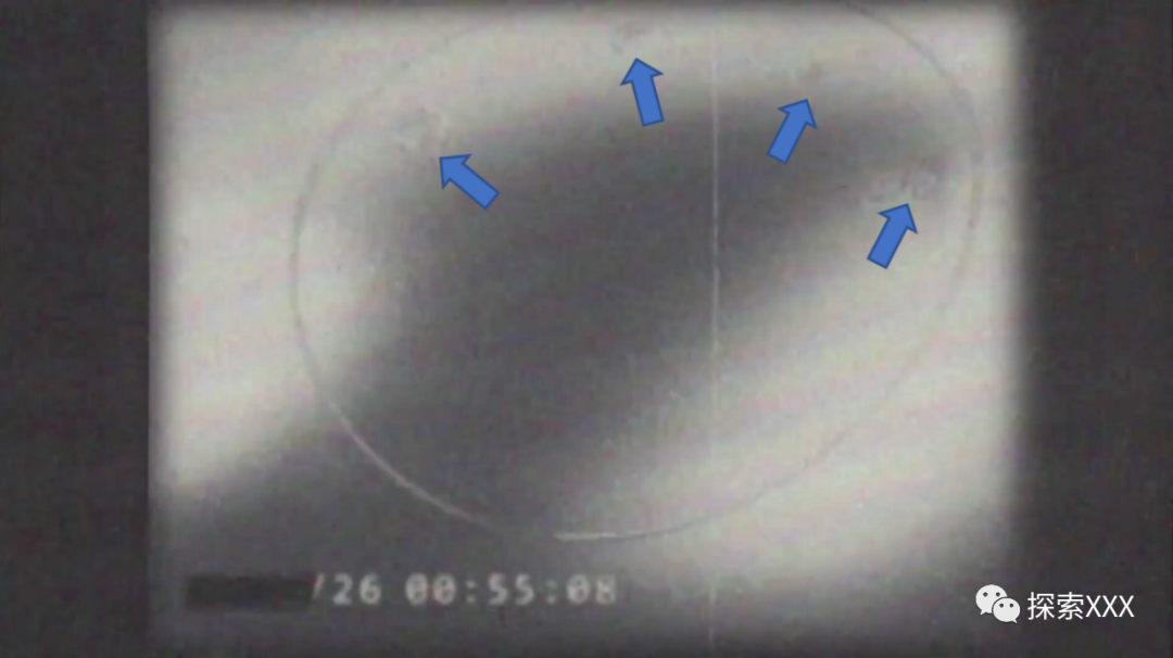如果仔细观察下边框,阴影随镜头的移动逐渐拉长,因此也可能是一个人的肩膀,并且头上应该戴着军官帽。另一种可能是影子是摄影机或者摄影师留下的。甚至这种可能是最有希望的一种,因为阴影运动似乎与相机运动相匹配。