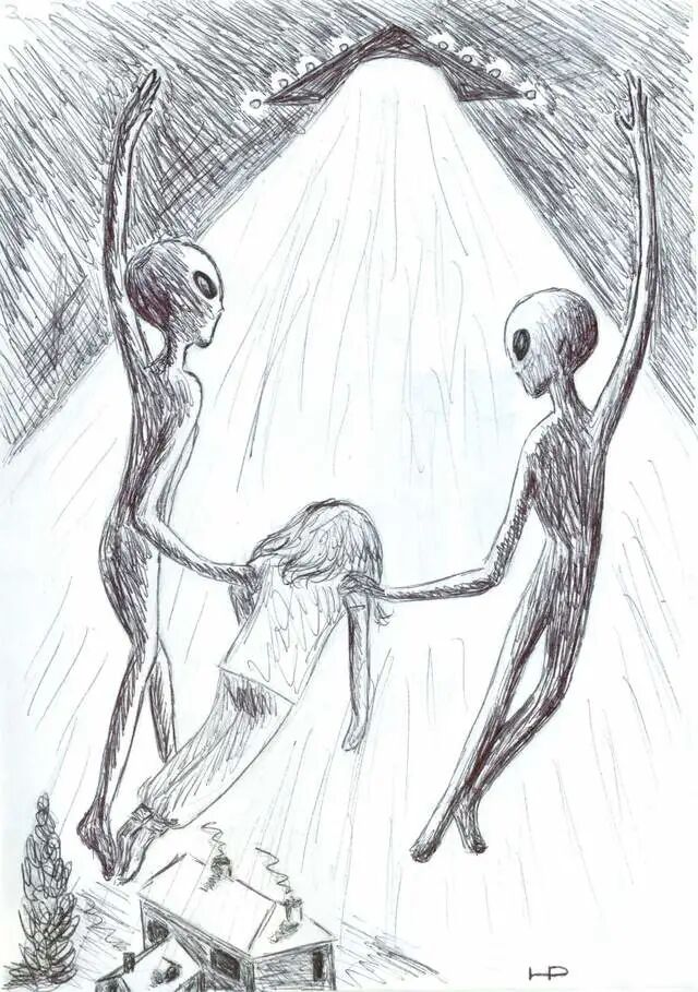 有时候,她的一些经历会通过闪回和梦境被她回忆起来。她解释说,这些外星人通过心灵感应交流,他们可以穿过墙壁和坚固的结构直接绑架人,只要伸手就可以把他们的目标带走。她说,有一次她就是这样从自己家的天花板上被绑架了,她解释了这件事:
