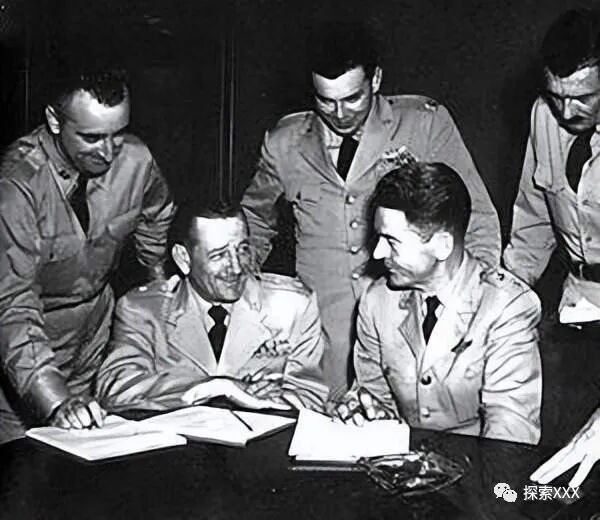 鲁佩尔特(站在中间)在1952年7月29日的五角大楼UFO新闻发布会