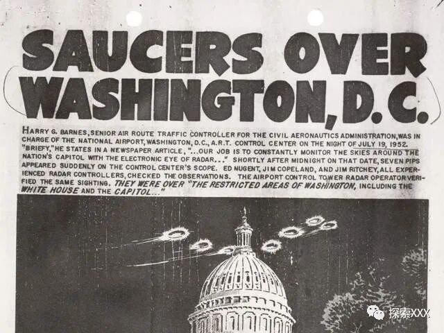 很快,最著名和最神秘的蓝皮书案例之一就出现了:1952年7月,华盛顿特区上空出现了不明飞行物。