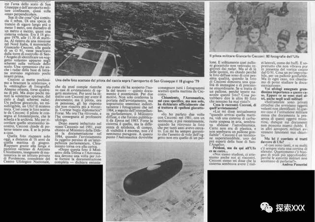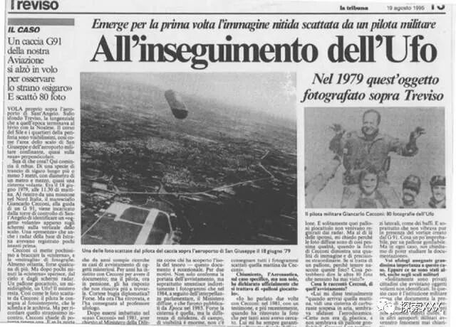 在UFO圈子之外,1979年6月由飞行员元帅吉安卡洛·切科尼拍摄的照片并不为人们熟知。然而事实上,切科尼元帅拍摄的照片非常清晰。更重要的是,它们在很大程度上被认为是非常可信的。因为除了切科尼元帅,还有多位目击证人,并且雷达也捕获了这个不明物体。切科尼所拍摄到的照片,有可能被证明是有记录以来外星飞船在我们地球上旅行的最明确证据。
