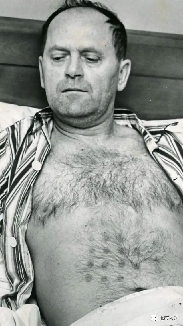 当时报纸上的照片显示,斯蒂芬的睡衣上衣敞开着,胸部有一系列圆形的三度烧伤痕迹,形成一个方形图案。