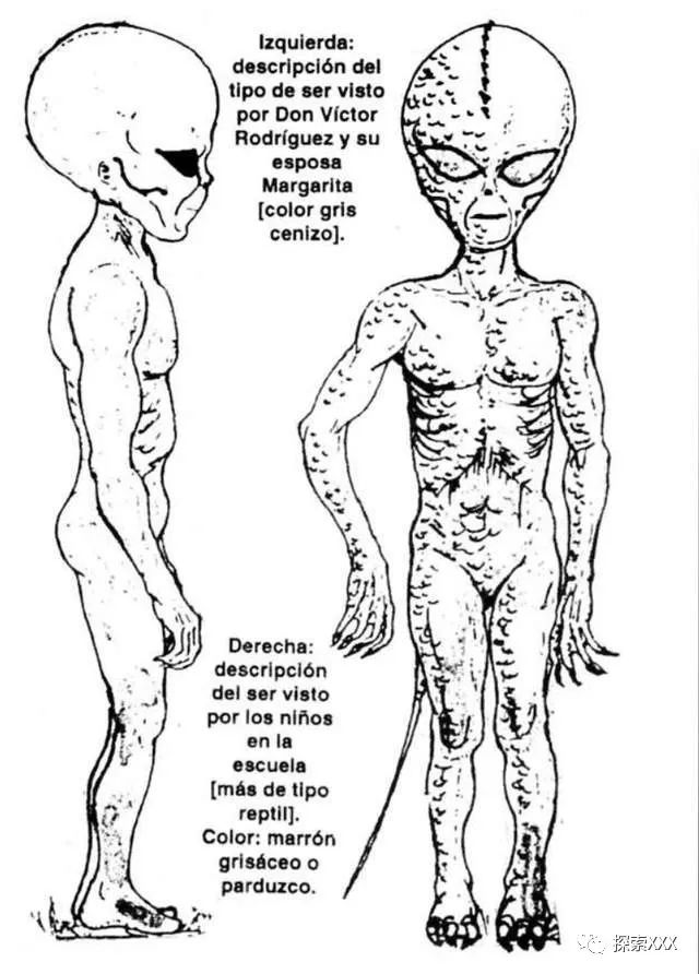 玛格丽塔补充道:“我们从来没有,从来没有见过这样的动物!”但他们两人都认为他们所看到的基本上与一种叫做“灰人”的类人生物的图片相似。维克多说他们曾经看到过奇怪的光球在他们的土地上,也看到过巨大的发光物体静止在佩列哈斯地区的空中,并且许多较小的发光物体从它们中出现,然后以极快的速度向各个方向消失。之后,大型发光物体会上升到更高的空中,也会消失。