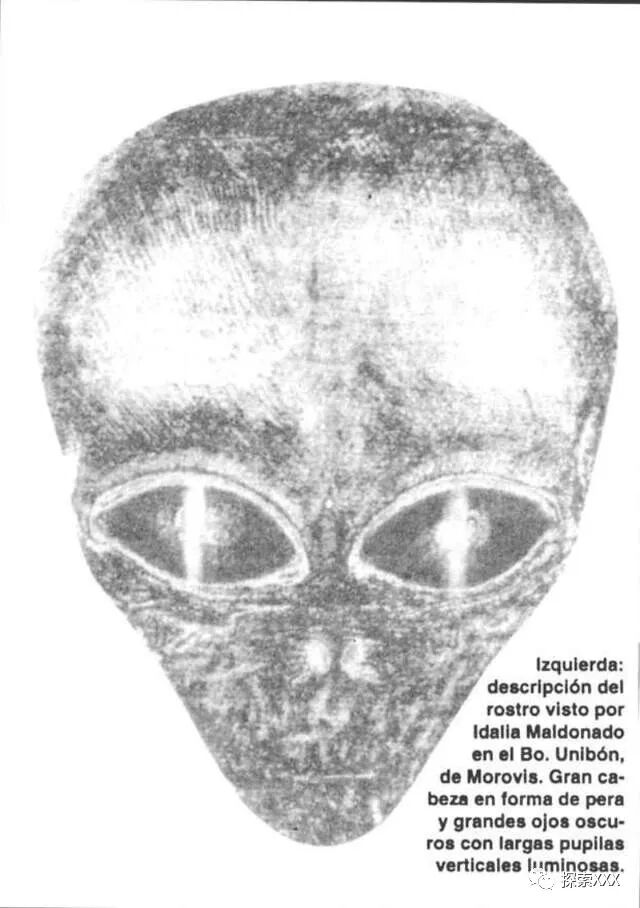 1995年4月的一天,一位住在乌尼邦区名叫伊达莉亚·马尔多纳多的年轻妇女,在给自己的宝宝喂奶时,看到一只怪兽正透过窗户聚神地看着她。正如她向我们描述的那样:
