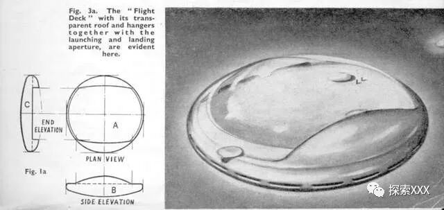 图1a则显示了另一个备选方案。在后一种方案中,船体的形状是圆形的,事实上,这种明显的变化可以用飞行器沿垂直轴倾斜和旋转来解释。这里的梨形是船从一个角度看时形成的椭圆,但由于椭圆的高边有一个凸起,整体轮廓清晰,让椭圆变成了梨形。三角形可能是由不同的角度形成的类似的错觉,显示了椭圆顶部的锥形凸起,以及在后下部离开的小型侦察船。电话听筒的形状是由于两边由一些透明的“屋顶”连接。
