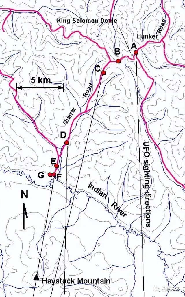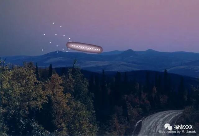 苏和莎拉沿着陡峭的山坡向所罗门王穹顶行驶,这是一个美丽的地方,从那里可以看到克朗代克河和印第安河之间的分水岭(上图中的点“A”)。它在视线中位于树线之上,因此一览无余。当她们接近山顶时,突然越过左侧的山脊,在她们前方的天空中,出现了一个奇怪的景象:悬浮在天空中的是一个巨大的雪茄形状的“东西”。这个物体在空中一动不动,有一排长方形的窗户。苏看了看手表,时间是凌晨1点50分。但她也注意到她的手表已经停了。