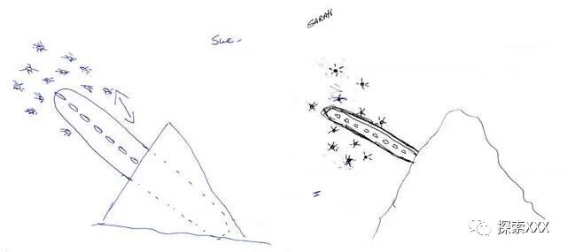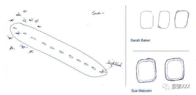 其他人在得知苏和莎拉的故事后半信半疑。他们将姐妹两个分开,让她们各自画出所见所闻。最终,她们绘制的当时的情形是高度相似的。尽管当时的原图已经丢失,但这些图与下方两姐妹在2000年3月8日所绘制的图非常相似。