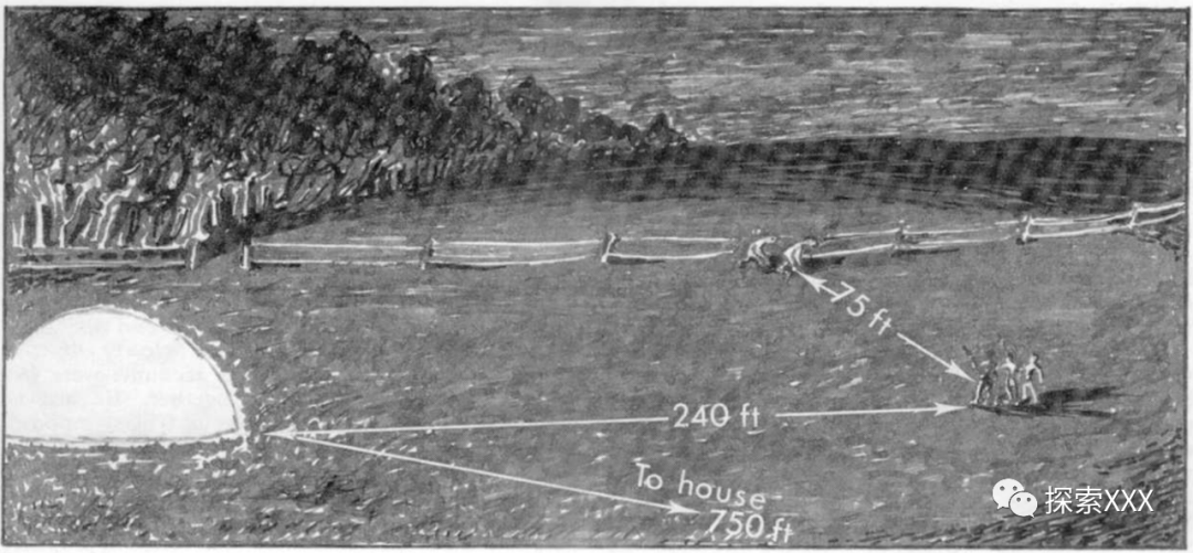 UFO研究小组在凌晨1:30分到达了这个偏僻的农场,并沿着土路向斯蒂芬他们目击到物体和光环的地方前进。但当小组到达指定地点后,并没有发现光环。