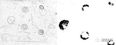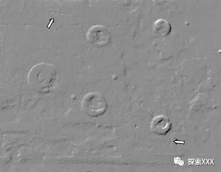 这位美国的研究人员还使用了图像边缘增强技术,揭示出“圆形构件,与液体沉积物一致”(下图左侧),同时图像背景去除显示出“圆形构件,与液体沉积物在背景上一致”(下图右侧)。