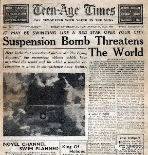 《青少年时报》是一份在爱尔兰都柏林的报纸,目标人群是青少年。在1950年3月24日至26日,这份报纸在其头版刊登了一篇不同寻常的独家报道,标题为“悬浮炸弹威胁世界”。文章说,俄罗斯人研制出了一种“悬浮炸弹”,它将“像一颗红星一样在你的城市上空摆动”,这可能会以某种方式与飞碟的出现有关。