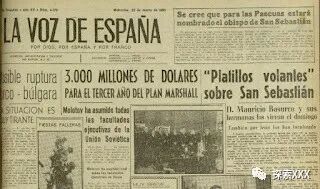 《西班牙之声》是西班牙的一份报纸,出版社位于西班牙北部吉普斯夸省圣塞巴斯蒂安市,距法国边境 20 公里。1950年3月22日星期三,该报头版刊登了一张照片,并配了一个令人惊叹的标题:圣塞巴斯蒂安上空的飞碟。