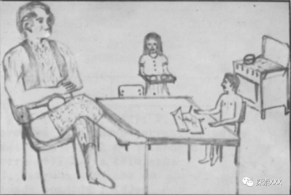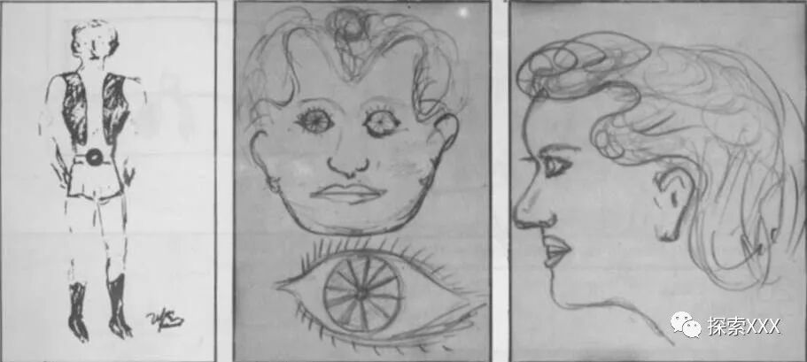 莫阿西尔还列举了这个神秘巨人的其他形态特征,除了已经提到的皮肤的蜡色之外,牙齿似乎没有任何缝隙,只有上下两块板。巨人的眼睛也与人类不同,没有虹膜,只有巨大的淡蓝色瞳孔。眼睛看起来似乎在发光,有一些纤维结构从眼球中心向周边辐射。他的额头非常明显,头皮上有大片无毛的凹痕,头发是金色的。