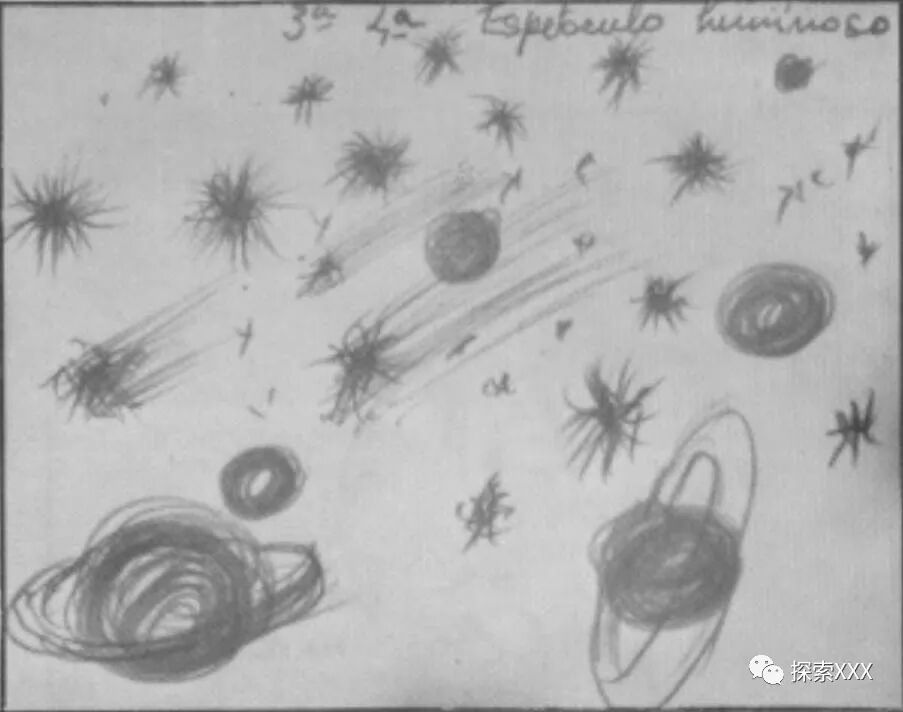 不幸的是,莫阿西尔事后绘制的一些当时看到的窗外的图画在搬家时丢失了。但他仍然记得一些,例如一些太空中的球体,样子像土星,但有一个更宽的光环并被彩虹的颜色包围;在另一个阶段,他还看到了更大、更圆的物体,颜色是哑光黄色;还有一些更小的物体,它们发出强烈、不寻常的光芒。
