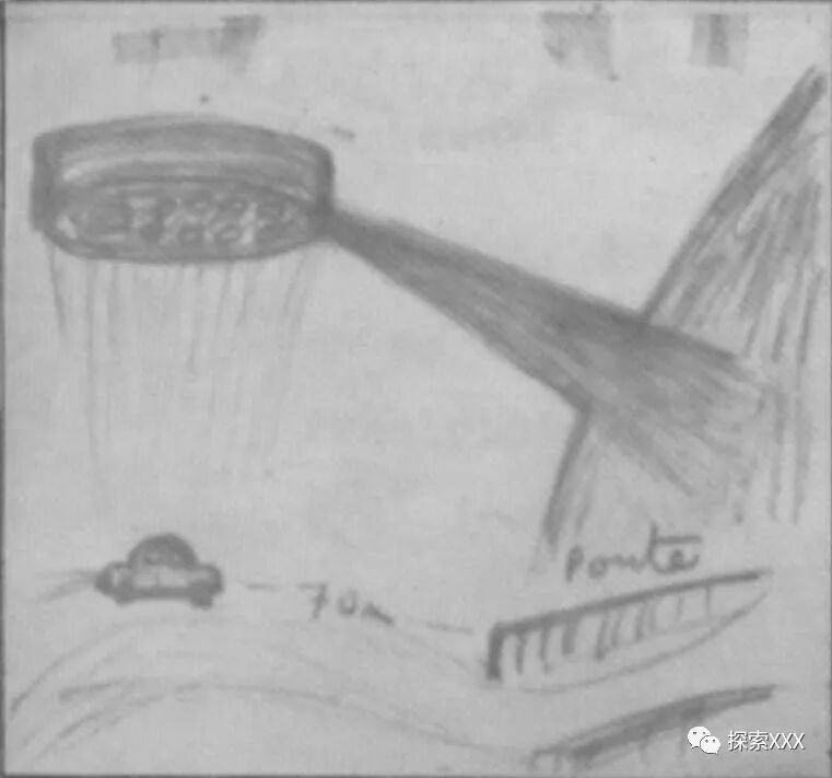 当时这艘飞船悬停在空中静止不动,一点声音也没有。紧接着,这个飞行物向山上发射了一束光,照亮了周围大约50米的地方,就像白天一样。然后它离开了,整个过程大约持续了5分钟。当时27岁的莫妮克在后来的调查中证实了这一目击事件。