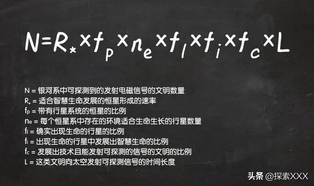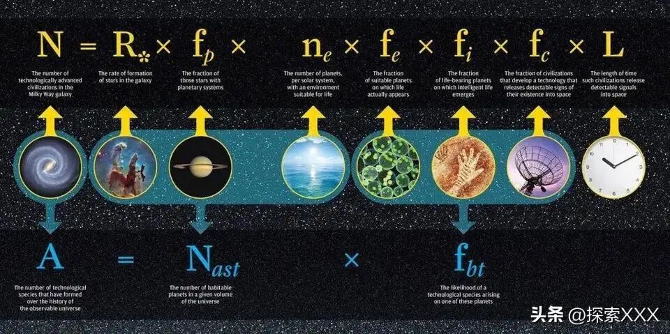 德雷克方程可能看起来很复杂,但它的原理其实很简单。简单的说,这个公式表明,在一个和我们一样古老的星系中,通过传播它们的存在而被探测到的文明的数量,必须等于它们产生的速度,乘以它们的平均寿命。