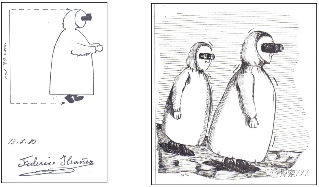 然而,由于费德里科是个好猎手,有着敏锐的观察力,因此他还是看到了一些细节。据他说,这些生物穿着白色服装,看起来像是“充满空气”。衣服从它们额头开始,一直落到地面,仅仅露出小小的黑色脚。