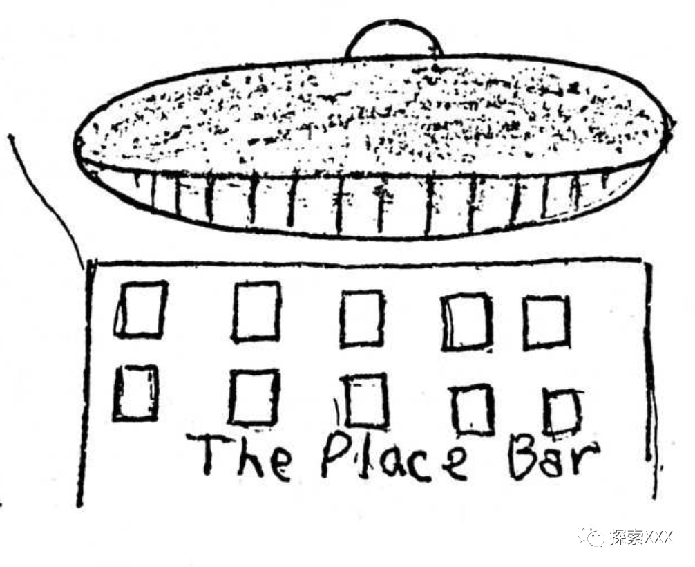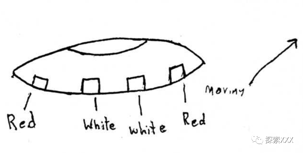 我走到窗户边,我简直不敢相信我所看到的......我们看到了一个碟形物体的形状,能看到窗户,还能看到这个东西在转动。你一下子就知道它是什么,因为灯光是怎样旋转的......它不是像飞机一样直飞,而是像这样,向上飞......它不是很亮的光,光来自飞船本身,但圆顶是反射的。它可能是灯光反射出来的。