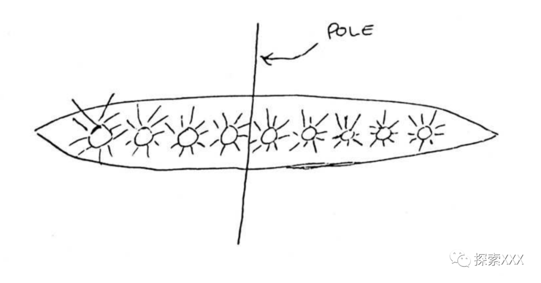 威廉说,这些灯光似乎固定在一个黑暗的物体边缘上,但由于强光的遮挡,无法清晰地看到。但那个物体肯定是圆形的,宽度比高度大—,也许有20英尺宽。当被问及单个灯光的形状时,他回答说: