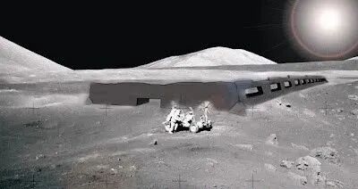 戴维斯声称,当时,他在监视器屏幕上,清晰地看到宇航员接近一个巨大的人工结构。那是一个巨大的仓库,似乎是由与月球表面上的岩石相同的材料建造的。建筑物磨损的非常厉害,似乎已经废弃多年。它没有屋顶,侧面有许多窗户形状的空洞,似乎没有人在内部或周围。