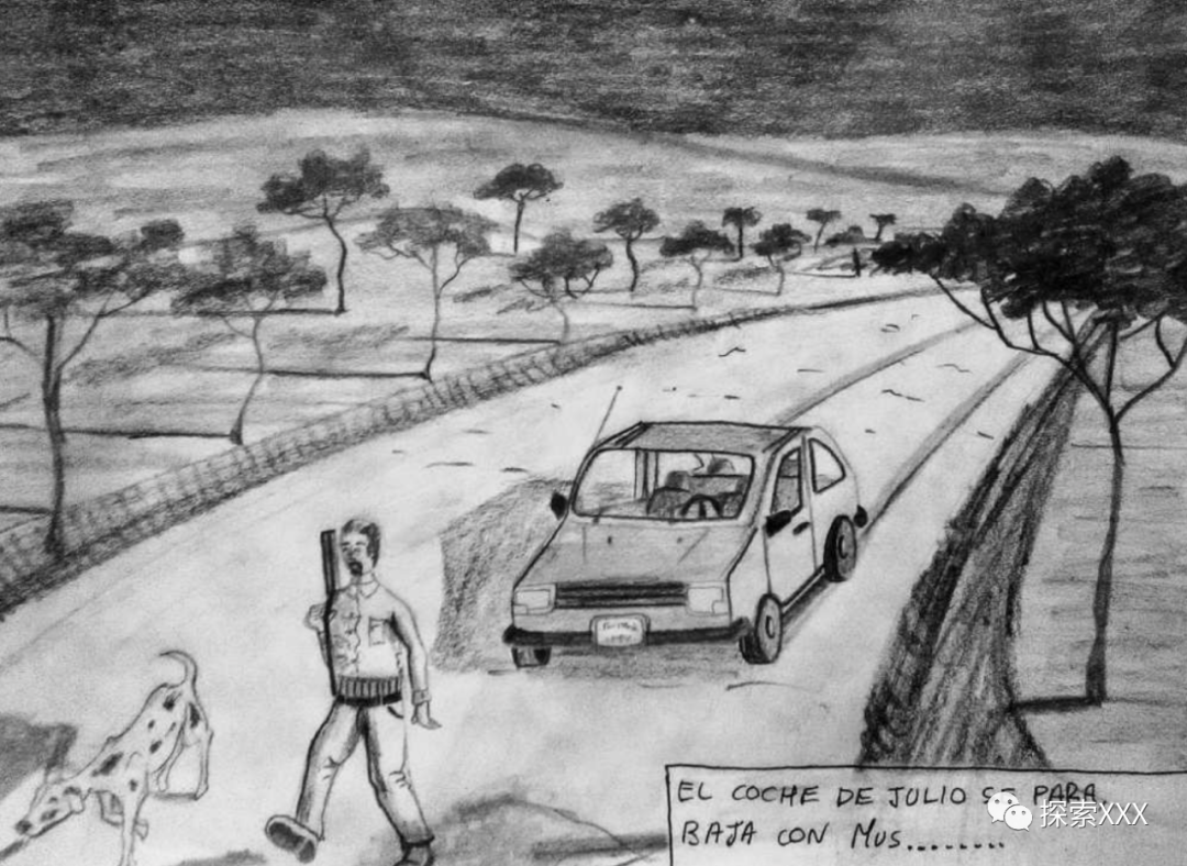 然后,胡里奥平静下来,环顾四周看看是否能发现什么。马斯仍在低吼。就在这时,胡里奥看到两个人影沿着小路走来。据胡里奥在催眠中回忆,当他第一次看到它们时,距离大约80米。