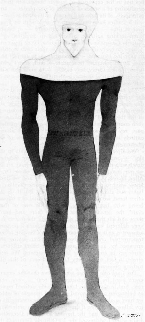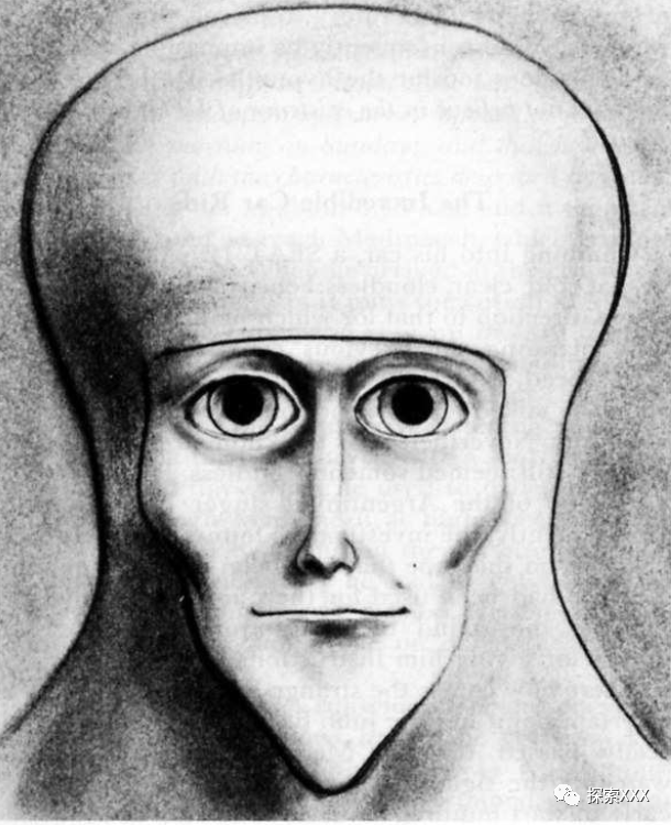 胡里奥同样观察到这些生物没有耳朵,但也可能是被兜帽遮住了。至于眼睛,他说它们绝对是“难以忘怀”的,就像从脸上突出来的两个巨大信标一样。眼睑呈椭圆形,不像人类那样以褶皱结束。虹膜巨大,是人眼普通虹膜大小的两倍,并且呈淡蓝色,几乎透明。瞳孔似乎扩张得很大,这使它们看起来像是一直处于某种恐惧或震惊状态下。