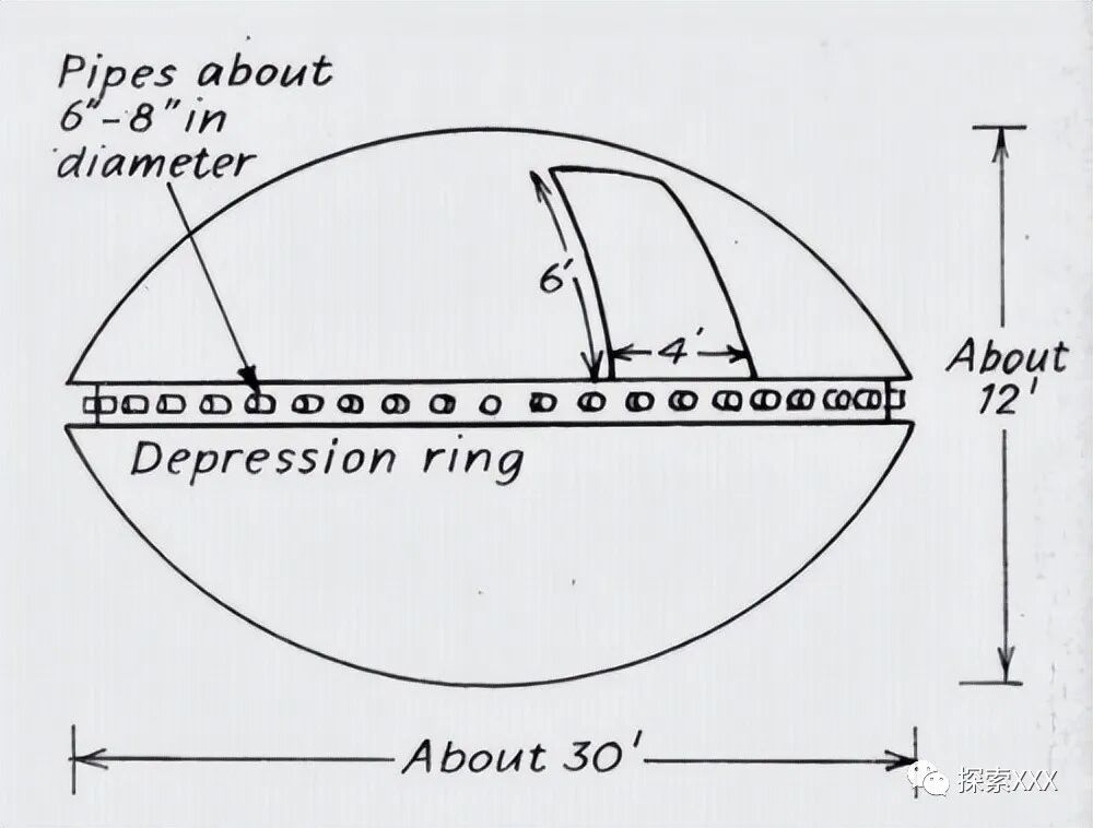 他走进院子,看见一个飞碟从天上飞下来,盘旋在他的农场上空。它是银色的,“比铬还亮”,高3.6米,直径9米。在一个边缘似乎是排气管,直径15或17厘米。