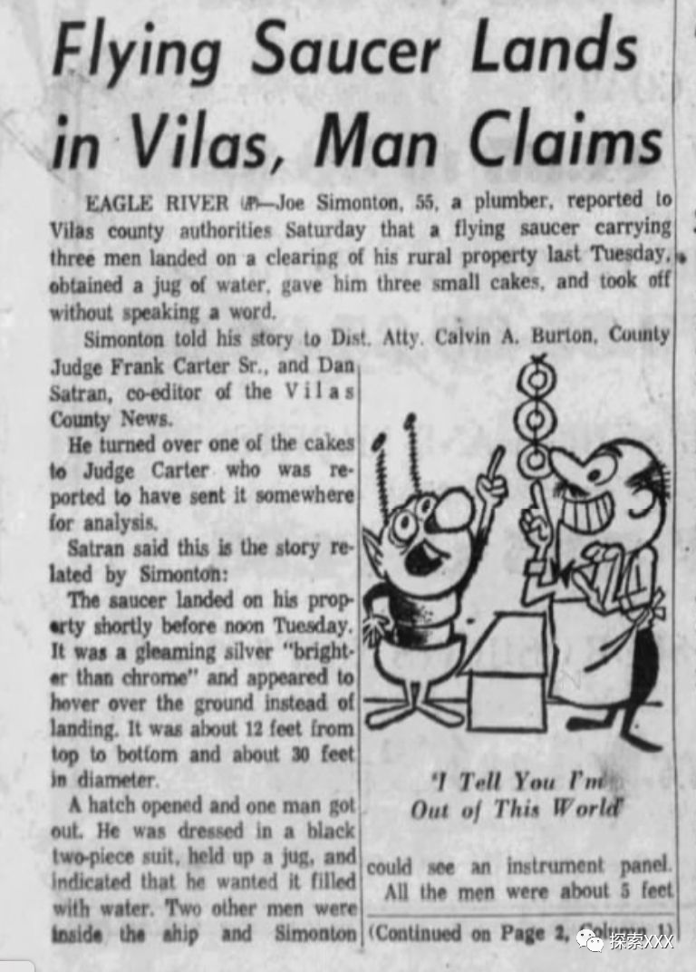西蒙顿因为不断受到邻居和媒体的嘲笑和笑话,他对合众国际社说:“我已经三个星期不能工作了。”“我得开始赚钱了。”他说,下次他看到飞碟时,他会把它藏在心里。