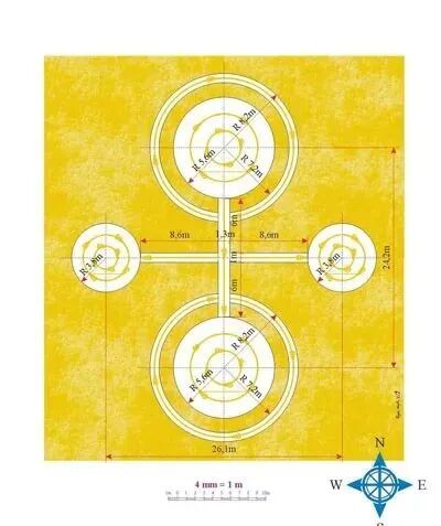 45分钟后,天空渐渐变亮,此时的监控画面中,215号田地里出现了一个新的图案!这个图案由30个大小不同的圆圈组成,而且应该就是在这45分钟内形成的!