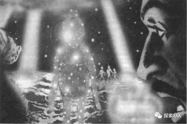 勒·布雷顿说,他感受到一种令人窒息的安静,同时也有一种奇怪的感觉,他不仅以某种方式与眼前的这个实体有交流,而且他和它也以某种方式与远处的另外两个实体有联系。最后,那两个也向他走来,分别站在第一个生物的两边。然后这三个生物都转身,加入到远处的实体群中。