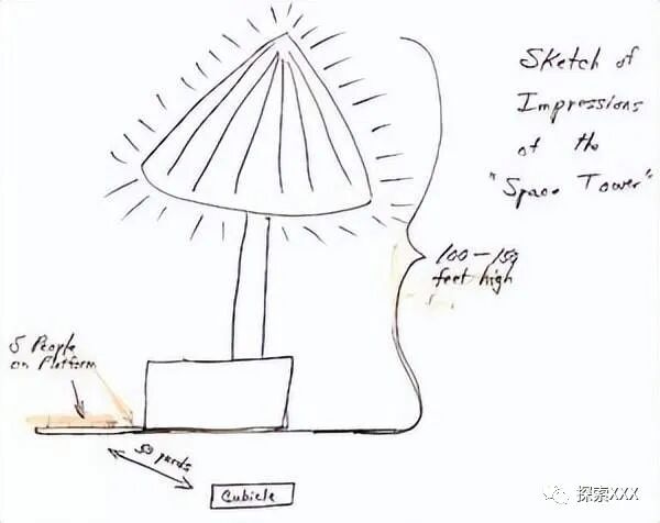 希格顿在这个表面上是外星世界的即兴之旅中,最难忘的景象是一座高耸于水面的巨塔。他后来将它与西雅图的太空针塔进行比较,但与它在地球上的同名建筑不同的是,这个巨大的伞状结构被旋转的灯光覆盖。同时,希格顿还被一种声音震撼了,他把这种声音比作电动剃刀的嗡嗡声: