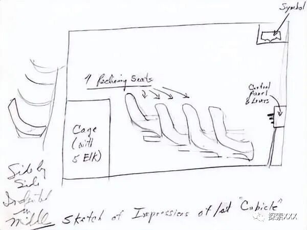 而且麋鹿似乎并不是唯一瘫痪的动物,因为几乎就在他看到这些冻僵的动物的同时,希格顿声称,他突然意识到自己正坐在一个高靠背的“桶形座椅”上,他形容自己的胳膊和腿上绑着限制性的“带子”。