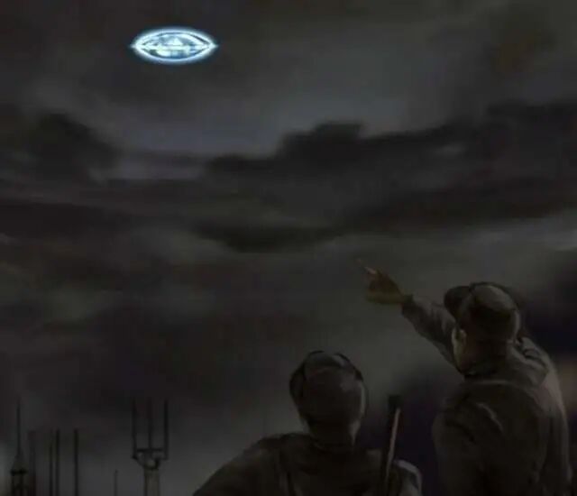 然后所有的士兵都看到天空中有一个发光的物体。这个物体盘旋在雷达大天线的正上方。在悬停了一会儿之后,开始以惊人的速度飞走了。