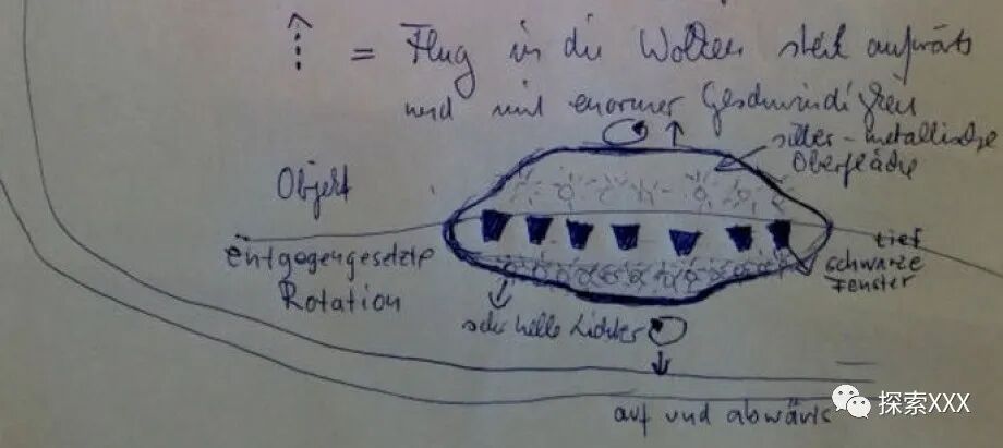 与H女士的描述类似,玛蒂娜也注意到了物体上的两个逆时针旋转的光环和一些黑暗的窗户。她说这个物体看上去就好像要降落在建筑物顶部。