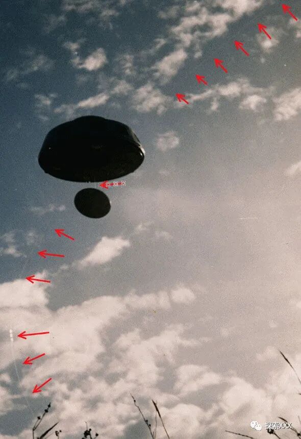 他还提供了对其中一张图片的分析,其中似乎有可见的绳子悬挂在所谓的不明飞行物上。他说:
